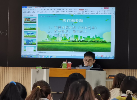 接着,黄理老师为同学们讲述了防诈骗专题和安全专题。警示同学们,在校期间,要有防诈骗意识和安全意识。谨慎管理个人财产和网络使用,以及注意人身安全、寝室用电安全,禁止使用违规电器等。力求通过此次创建活动,规范学生的行为习惯,打造优质校园。