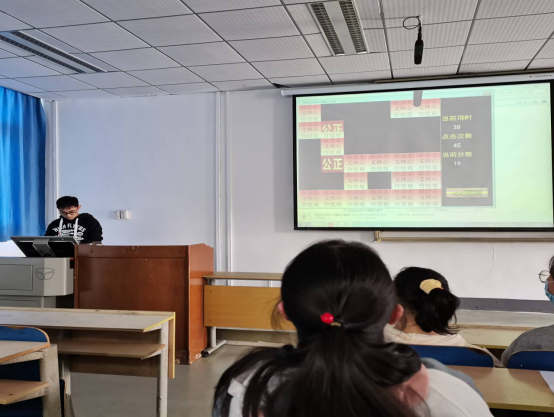黄理老师为大家讲述了“24”字社会主义核心价值观,以及“文明健康 有你有我”六大主题,还演示了自己制作的社会主义核心价值观小游戏,以生动有趣的方式帮助同学们加深理解及记忆。随后他深入讲到文明寝室建设的各项指标和注意事项,并用图片展示了不文明寝室和文明寝室,旨在促进学生养成良好的生活习惯,为学习、生活打下良好的基础,推进文明校园建设的脚步。