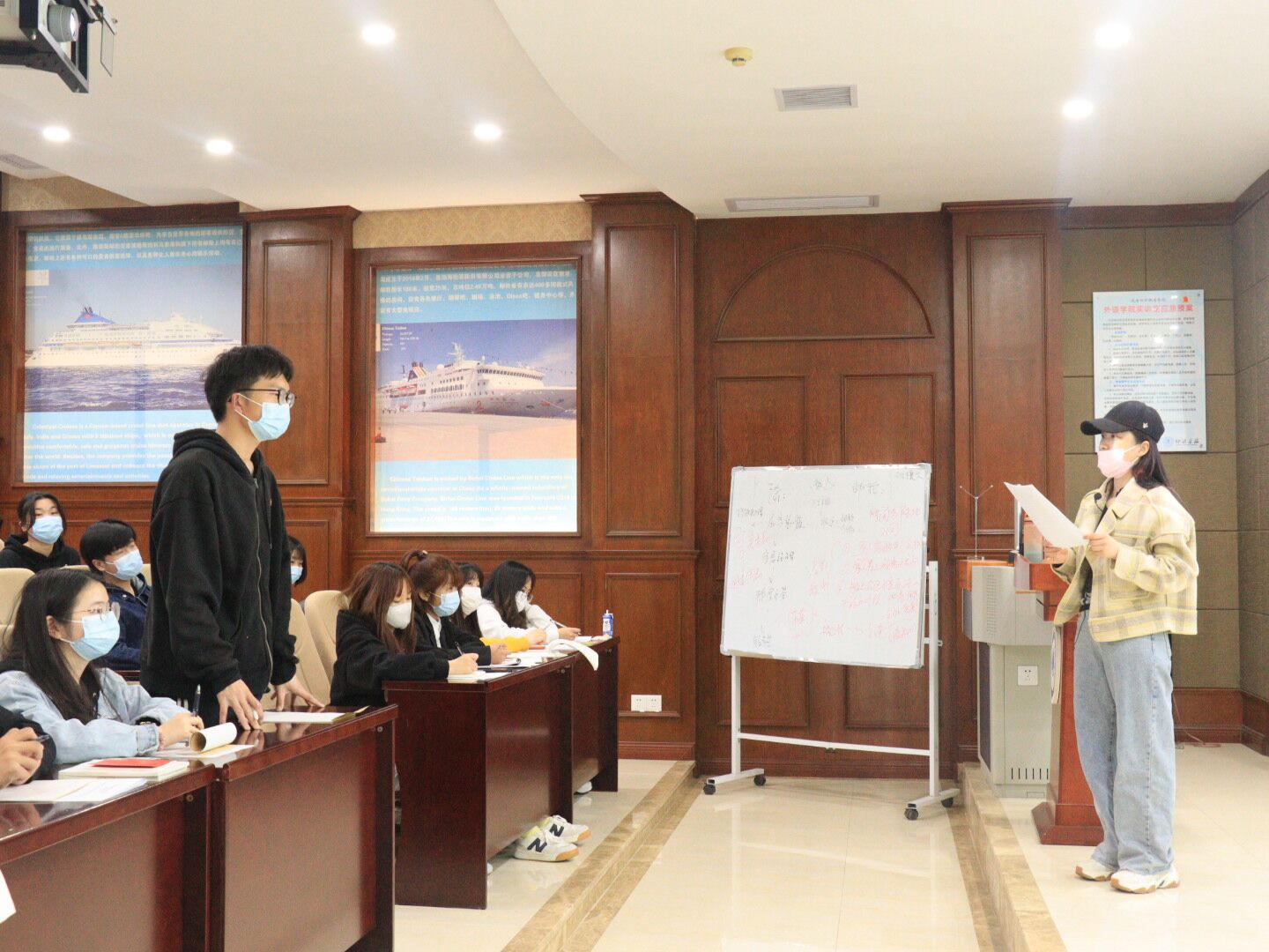 为提高入党积极分子们的思想觉悟,加强对青年学生政治思想的引导。武汉城市职业学院外语学院于2022年3月10日12点30分在邮轮实训室开展了党课第二讲。今日党课是由陈金枝老师讲解的,学习的内容是《中国共产党为什么能》,开课时陈老师问同学们为什么要加入中国共产党,同学们各抒己见,陈老师对于同学们的观点也做出了肯定以及相应的回答。