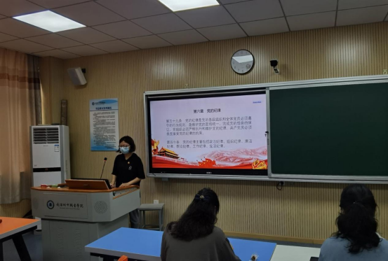 李俊梅同志带领全体党员学习党章《第六章党的纪律》。