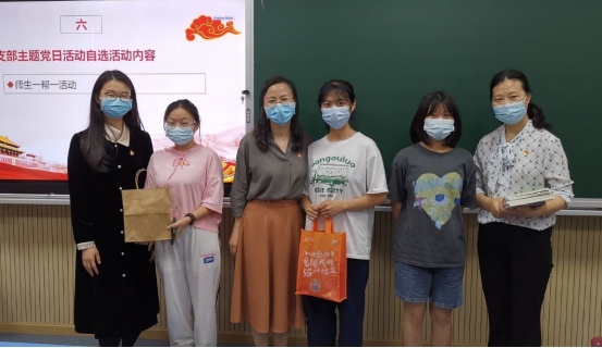最后一项是师生一帮一活动。为了能实际帮助部分学生解决学业、生活等各方面的困难和压力,外语学院教师第一党支部在深入调查、走访学生的基础上,建立了教师与学生的“一帮一”互助机制。活动中老师们把精心调选的礼物送给结对的贫困学生,学生们都竞相表示着感谢,洋溢着幸福的微笑。支部书记潘文霞同志做总结发言,师生一帮一活动能为老师和学生搭建一个沟通的平台,促进交流。她还勉励学生要以学业为重,在思想上、生活上、学习上多与老师沟通交流,通过自己的努力改变困境。常怀感恩之心,利用好这个平台,多做自我提升,通过自己积极的努力来改变自己的生活与人生轨迹,实现自己的人生理想。