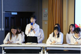 旅游英语专业1904班学生、中共预备党员范宇银,总结了她在中共中央旧址担任了7个月的志愿讲解员,开展了两百多场的志愿讲解的志愿经历,给大家声情并茂的讲解了展馆中一口旧皮箱的故事。