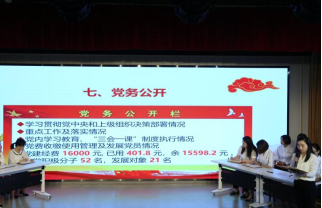 在党务公开环节中,纪检委员倪娜同志就近期支部学习贯彻党中央和上级组织决策情况、重点工作落实情况、党内学习教育及“三会一课”制度执行情况、党费收缴使用情况和发展党员工作情况进行了公开。