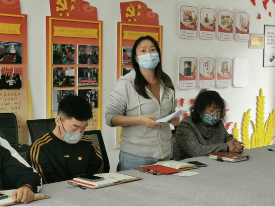 活动第一项,全体支部成员向组织委员李园园同志缴纳本月党费;然后全体成员起立,面向党旗重温入党誓词;接着由曾征同志带领大家一起诵读党章《党的基层组织》部分内容,完毕后,支部书记公示本支部成员1-4月学习强国情况,勉励各位同志积极参加学习强国学习。