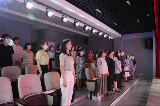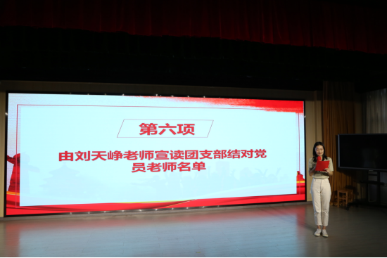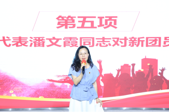 外语学院党总支潘文霞同志作为党员代表分享自己入团的经历和初心。希望团员们能把树立正确的理想、坚定的信念作为立身之本,理想信念更为坚定,身心素质向好向强,知识素养不断提升,社会参与积极主动,努力成长为堪当民族复兴重任的时代新人。