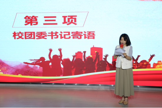校团委书记罗媛表达了对外语学院涌现出得一批优秀青年,例如增重献血浆女孩贺千禧、弘扬红色文化导游冉龙江、踔厉奋发笃行青春杨柳青和自强之星昂扬青春姜志容的赞许。她对广大青年同学寄语,要坚定理想信念,明确奋斗目标,始终提升胸怀大局;要铸就求学恒心,练就过硬本领,始终增强锐意创新的底气;树立人生信心,珍惜青春光阴,始终保持勤学进取的朝气。