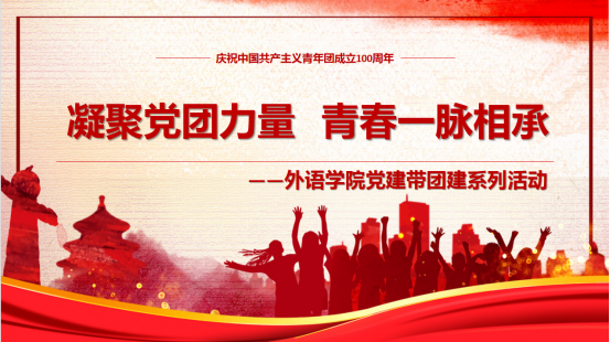 回望百年,青春向党。一百年来,中国共青团始终与党同心、跟党奋斗,团结带领广大团员青年把忠诚书写在党和人民的事业中,把青春播撒在民族复兴的征程上。为加强学院共青团队伍建设,展现新时代青年良好的精神风貌和昂扬的斗志,值此中国共产主义青年团成立100周年之际,我院特举行“凝聚党团力量,青春一脉相承”活动。参加本次活动的有武汉城市职业学院团委书记罗媛,外语学院院长吴丽,外语学院党总支书记吴艳丽,外语学院的副院长张俊、学院全体党务工作者及师生党员代表和团员代表。