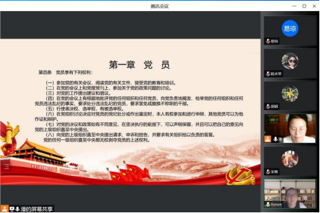 首先,全体党员同志缴纳了7月份党费,胡娟同志带领大家重温了入党誓词。刘青同志带领全体党员集体诵读党章 (第一章《党员》)。