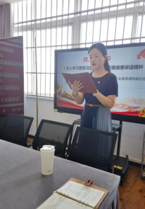 叶丽老师带领大家认真学了王蒙徽同志在大会上所作的《立足新发展阶段贯彻新发展理念努力建设全国构建新发展格局先行区奋进全面建设社会主义现代化新征程》报告精神以及参加武汉市代表团审议时的讲话精神,并再次提醒大家:全面从严治党是以习近平同志为核心的党中央治国理政最鲜明的时代特征。我们坚持把抓党建作为第一责任,把抓好党建作为最大政绩,以强烈的自我革命精神推进新时代党的建设,在大战大考中砥砺了作风、锤炼了本领、检验了能力。奋进新征程,只要我们坚持和加强党的全面领导,纵深推进全面从严治党,就一定能把党的政治优势、组织优势、制度优势、密切联系群众的优势,转化为攻坚克难的制胜优势,就一定能战胜前进道路上的一切艰难险阻,夺取新的更大胜利!