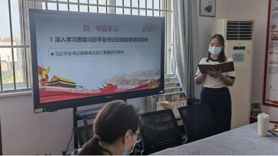 之后,党员老师们认真进行了专题学习。蒋婷老师和大家共同学习了习近平总书记视察湖北武汉重要讲话精神,科技自立自强是国家强盛之基、安全之要。我们必须完整、准确、全面贯彻新发展理念,深入实施创新驱动发展战略,把科技的命脉牢牢掌握在自己手中,在科技自立自强上取得更大进展,不断提升我国发展独立性、自主性、安全性,催生更多新技术新产业,开辟经济发展的新领域新赛道,形成国际竞争新优势。