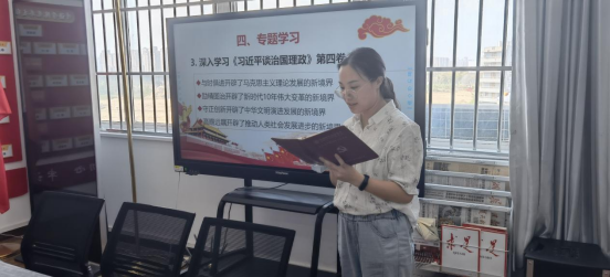 接着,谢冰老师带领大家学习了《习近平谈治国理政》第四卷。大家深入学习理解了习近平新时代中国特色社会主义思想之所以成为当代中国马克思主义、二十一世纪马克思主义,就在于坚持把马克思主义基本原理同中国具体实际相结合、同中华优秀传统文化相结合,深刻回答了中国之问、世界之问、人民之问、时代之问。