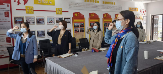 活动伊始,全体党员教师自觉缴纳了党费,并在蒋婷老师的带领下重温了入党誓词,胡亚辛老师带领大家集体诵读了党章。