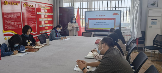 接着,在党务公开环节中,谢冰同志向大家说明了第二党支部党费收缴及使用情况,并和大家分享了湖北省政府党组召开警示教育会的情况,再次提醒大家要坚定不移强化政治建设,不断提高政治判断力、政治领悟力、政治执行力,坚持把政治纪律和政治规矩挺在前面,坚持把斗争精神植根心中,坚决站稳政治立场,以实际行动坚定捍卫“两个确立”、坚决做到“两个维护”。