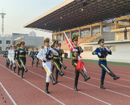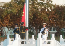 外语学院第十一周升旗仪式于11月7日在风雨操场举行,7点15分,升旗仪式准时开始,国旗护卫队迈着铿锵的步伐,昂首挺胸,精神抖擞,护送国旗行进至升旗台。伴随着国歌,鲜艳的五星红旗冉冉升起,迎风飘扬。护卫队队员们也列队整齐,怀着对祖国的崇高敬意,向国旗敬礼,传递出自己对祖国的爱意。