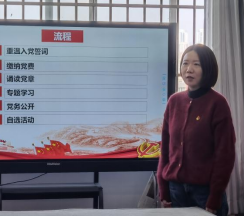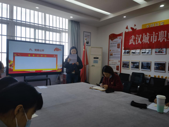 在本月的党务公开环节,纪检委员倪娜老师公开了本支部的党费情况以及支部委员的改选工作情况。