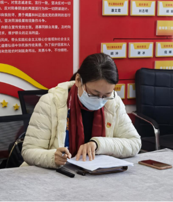 章昀萱老师带领大家一起学习了《中国共产党党徽党旗条例》,并开展了专项排查工作。胡冲书记也再次提醒大家要认真意识到中国共产党的党徽党旗是中国共产党的象征和标志,党的各级组织和每一个党员都要维护党徽党旗的尊严。在日常的工作中,要严格遵守条例,正确使用党徽党旗。