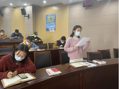 为深入学习领悟党的二十大精神,理解党的二十大提出的新思想、新要求,不断提高理论知识水平,增强党员干部的凝聚力、战斗力,联系工作实际,外语学院学生党支部11月21日组织开展了“学习二十大,奋进新征程”主题党日活动,支部书记刘天峥同志主持本次会议。