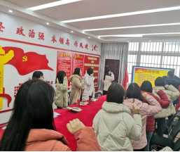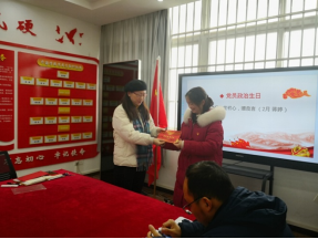 与会的全体党员教师们缴纳了党费,还迎来了蒋婷老师的政治生日,她满怀热情地忆初心,回顾了入党动机和经历,胡冲书记代表组织向蒋婷老师赠良言、送贺卡。全体党员教师在蒋婷老师的带领下重温了入党誓词,章昀萱老师带领大家集体诵读了党章。
