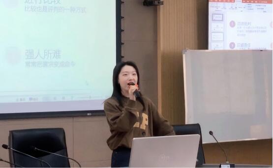 紧接着,涂凡菲老师为我们开展了培训活动的第三堂课,她主要围绕“观察、感受、需要、请求”这四个关键词为我们讲解“非暴力沟通”这一课题,并让学生们进行现场情景演绎。然后,由李娟老师为学生干部们讲述大学生活动组织策划与实施,她将这一堂课分为了准备期、开展期、收尾期三个阶段,并给学生干部们留下了一份需以部门为单位上交的课后作业。第五堂课,周孔强老师以“如何写好一份社会实践调研报告”为主题开展,他讲述了社会实践调查报告的作用、意义以及核心,指出写一篇社会实践调研报告要明确做什么、为什么要做、怎么去做这三个问题。
