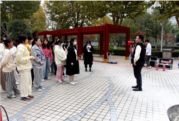 在老师们的讲解和同学们的互动中,我们学到了许多有趣的知识和技能,现在,让我们一起来回顾一下这些精彩的课堂吧!培训活动的第一堂课由李园园老师开展,课堂内容以“挺膺担当,外院有我”为主题,带领我们一起讨论了关于如何平衡学习和活动之间的关系、怎样明确自身职责和定位以及如何更好地成为一名学生干部等一系列问题。接着,黄理老师为我们讲授了办公软件使用操作技巧,他用电脑为我们演示制作文档、Excel以及PPT的一些小技巧。在培训活动的第三天,全体学生干部在校训广场进行了消防演练。