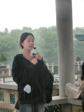 (23级同学们正在精彩地讲解东湖碧潭观鱼景点)