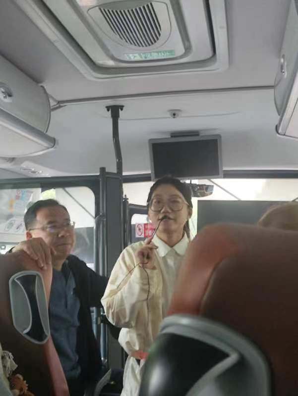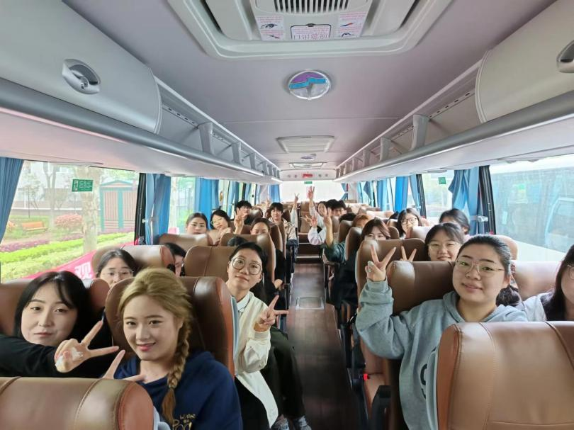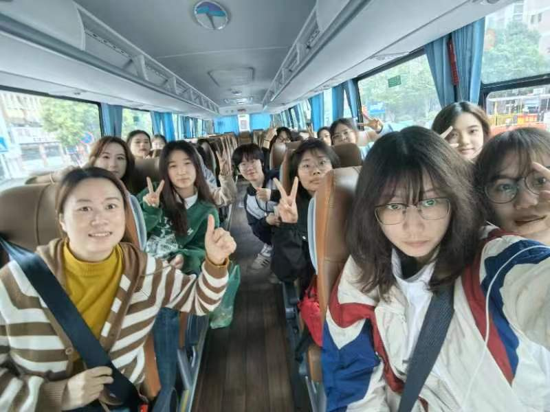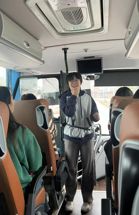在车上,22级两位学姐为23级的学妹们演示了中英文讲解武汉市市情,随后组织大家进行了游戏活动,活跃了车内气氛,更是点燃了同学们心中对此次实践活动的热情。