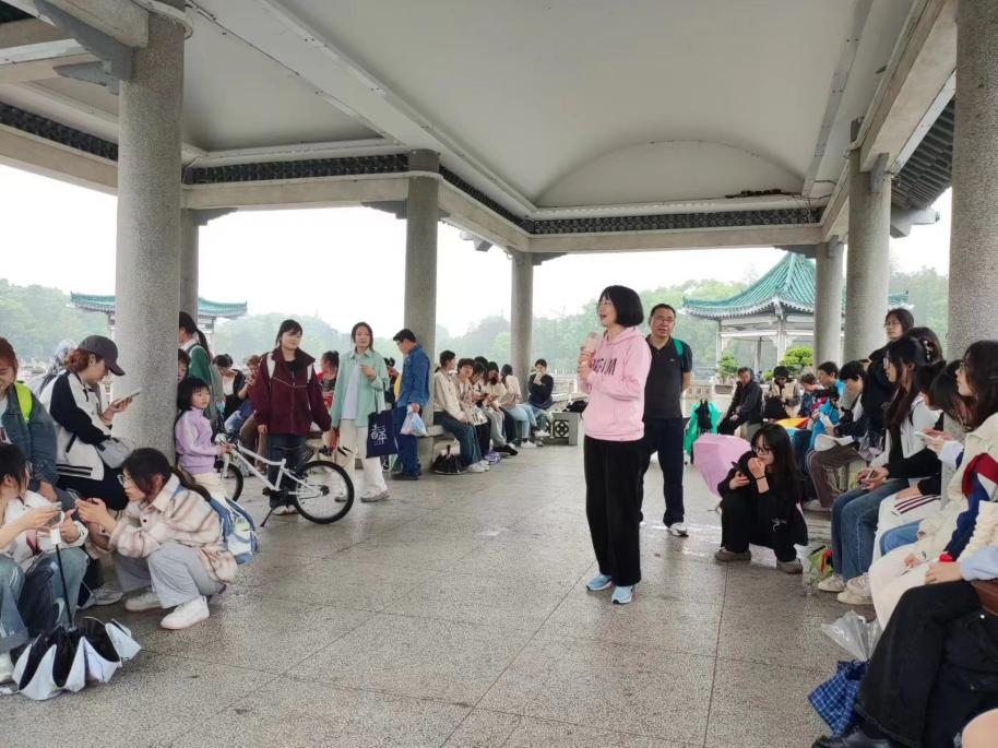 下午,旅游英语23级和22级同学及带队老师们,一起前往东湖。蒙蒙细雨并没有影响同学们的热情,在碧潭观鱼,23级全体同学在此展开讲解,每位同学都充分发挥了自己的努力,充分展现了作为旅行英语专业学生的能力,并吸引了大批游客围观聆听,获得了老师游客的一致赞赏。