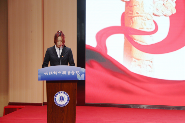 接下来,外语学院旅英2301班的向往同学代表本期培训班全体学员发言,她提到作为共青团员,要坚持做好“五个模范”,以成长为一个合格的共产党员为目标、为光荣!