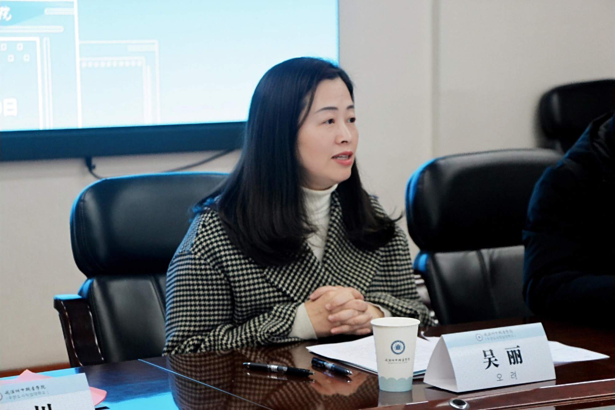 外语学院(国际教育学院)院长吴丽则对我校近年来与韩国展开的交换生项目、师生合作交流及应用韩语专业办学情况进行了说明,并着重介绍了我校“中文+职业技能”教学的师资力量和优势。