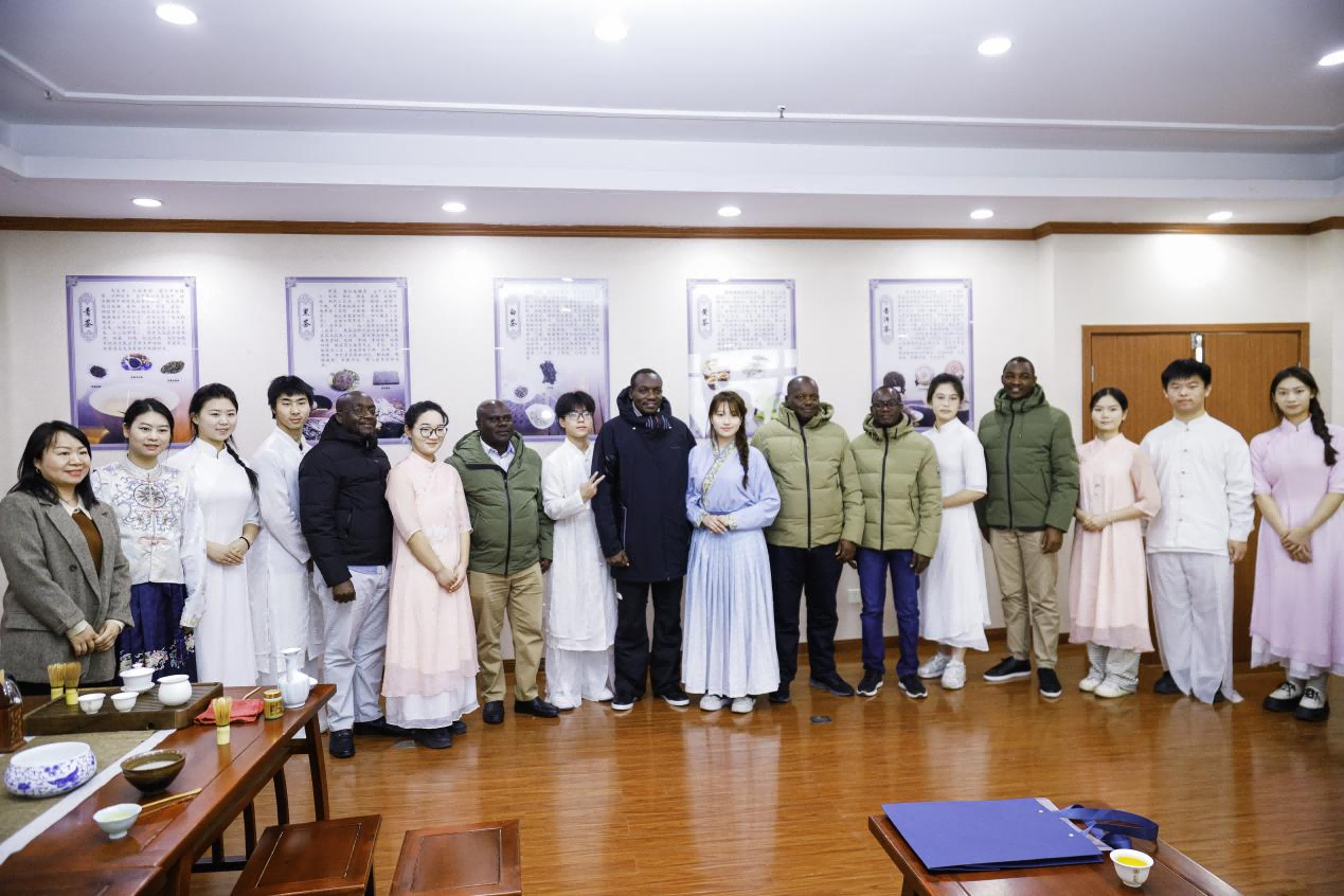 基西郡代表团一行首先参观了文化创意与艺术设计学院,他们饶有兴致的参观毕业生作品展,来到陶艺工作室感受实训课上课环境,交流学生作品中环保理念的具体实施,了解有关文创产品、农产品的包装设计。保罗·辛巴·阿拉蒂郡长对学生的水墨画,油画作品赞不绝口!