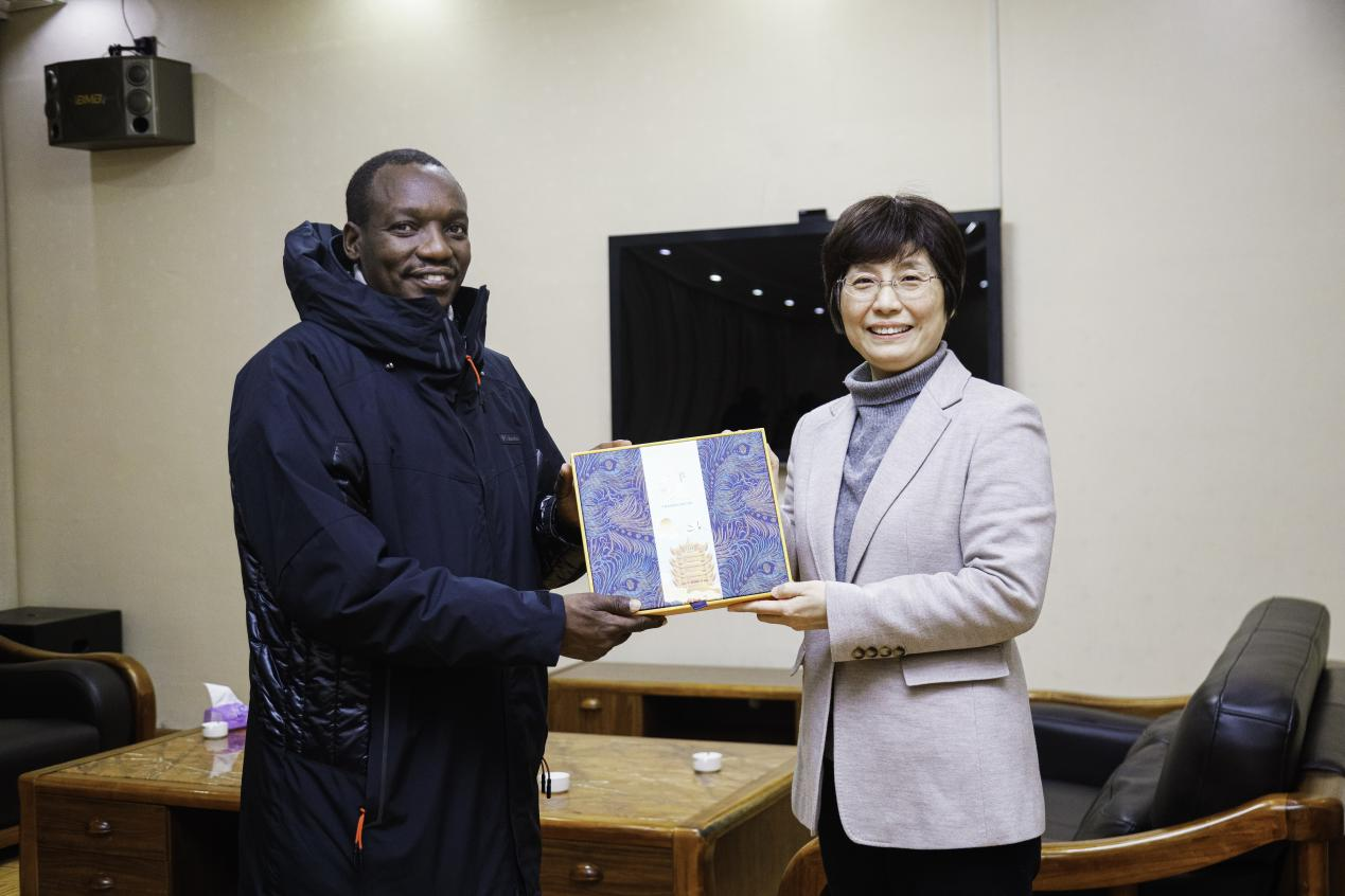 辛巴·阿拉蒂郡长与我校张英校长互赠礼品