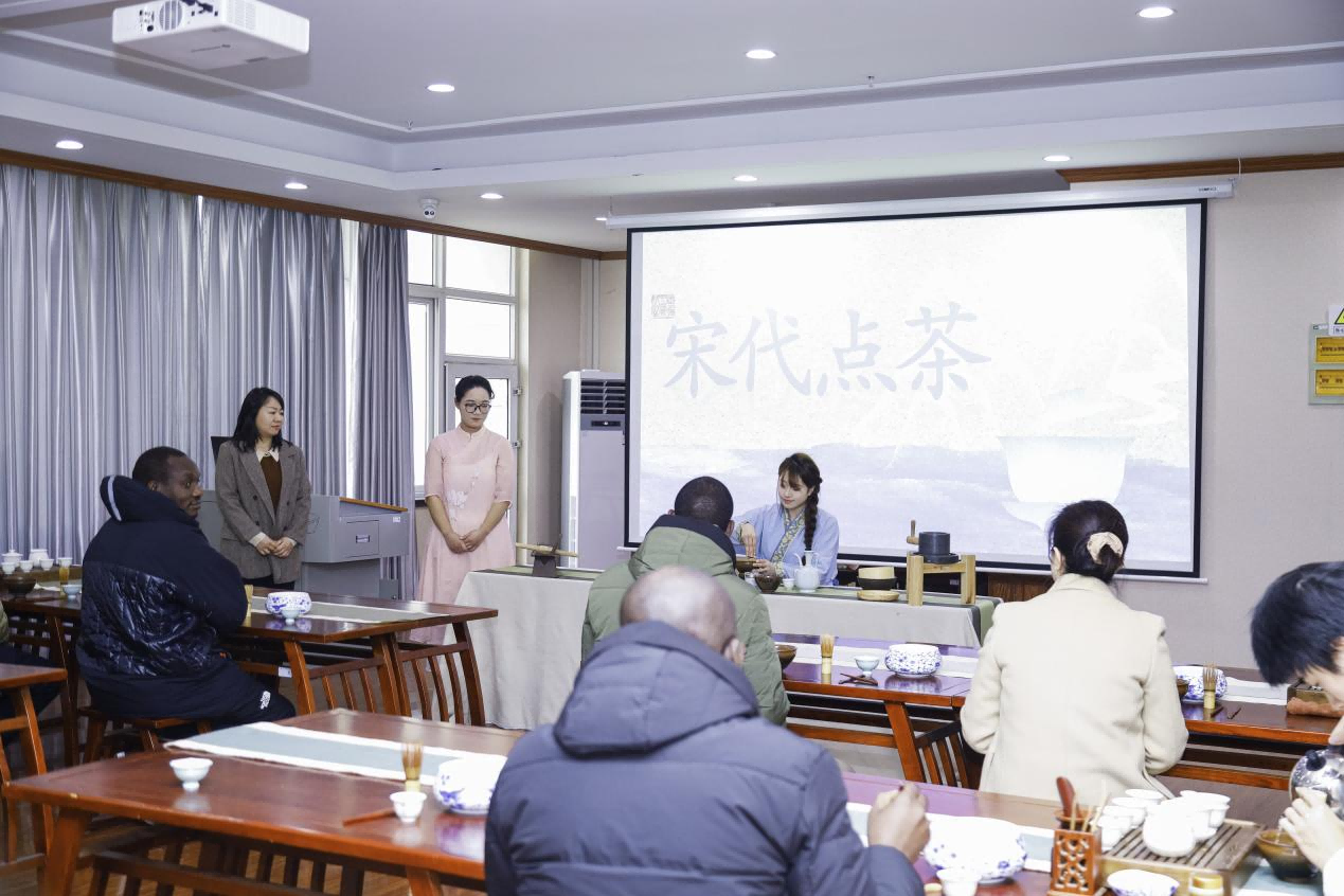 代表团一行最后来到了旅游与酒店管理学院,欣赏在世界级技能比赛中获奖学生的花式调酒表演,品尝由酒店学院师生调制的多种饮品。他们还观看了酒店学院师生带来的以宋式点茶为主题的茶艺表演,领略茶工艺的非遗文化,交流学习中国优秀传统文化。