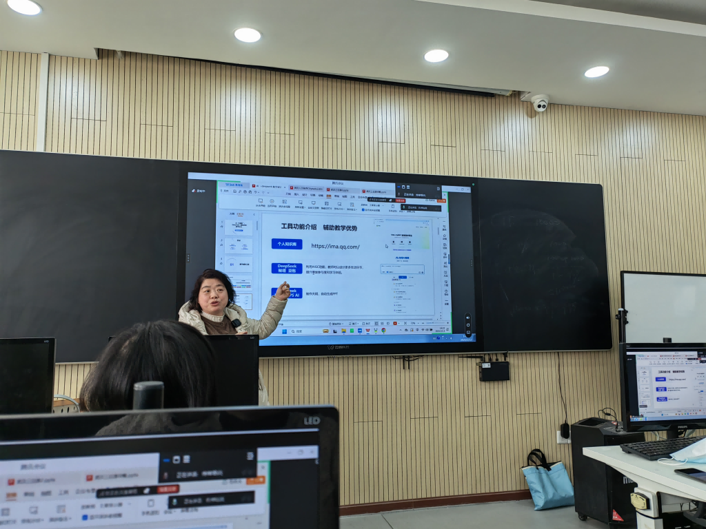 为系统提升学院教职工信息化教学能力,下午14时,学院组织开展《人工智能应用实践》专题培训,本次培训学习由武汉工程大学章瑾教授主讲,培训聚焦语言教学智能化以及跨文化场景,通过应用案例与实现方法以及实战项目与案例分析等具体方式指导教师利用AI工具进行教学辅助,同时章教授还为我们演示和推荐了多个实用且易用并且适合高校教师使用的AI工具,如WPS AI(文档生成、智能校对)、Deepseek),学习完后,老师们纷纷表示获益匪浅,本次培训实现了跨学科融合与教师技能提升双重效果。在人工智能深度渗透教育的时代,教师的角色正经历从知识传授者到教育设计师的转型,作为新时代的高校教师,我们主动应变、求变和通变,只有如此方能在AI席卷的时代浪潮中扎得深、站得稳、行得远。