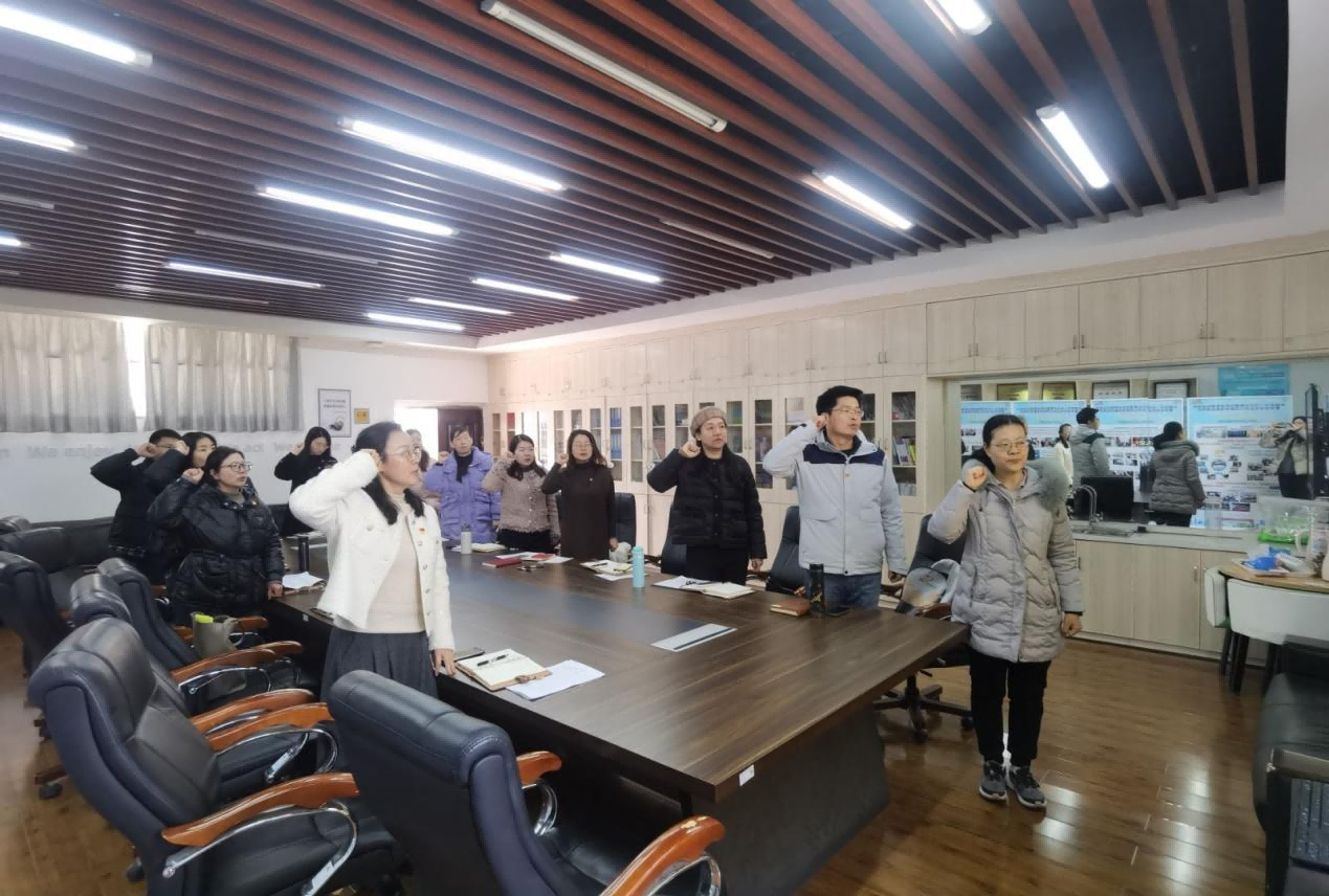在庄严的党旗下,崔翠同志带领全体党员重温入党誓词。党员们高举右拳,庄严宣誓,重温入党时的铮铮誓言,再次感受到入党初心的神圣与庄严。这不仅是对党员身份的深刻铭记,更是对党员使命的再次确认。通过重温入党誓词,党员们进一步坚定了理想信念,明确了在新学期中肩负的责任与使命,激励着大家在各自岗位上以实际行动践行对党的承诺。