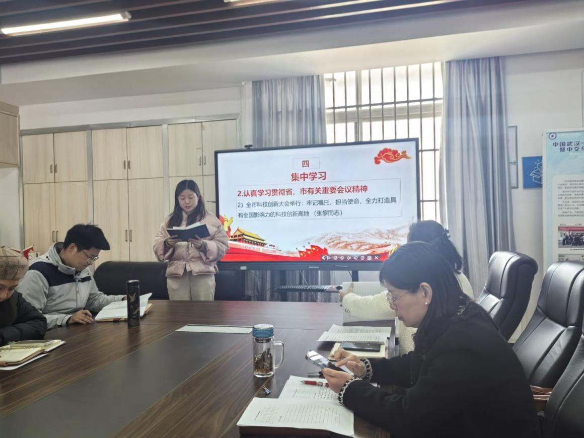 在学习贯彻省、市有关重要会议精神方面,陈水琴同志介绍了湖北新春第一会中提出的“建成支点要重点实施七大战略”的具体内容。通过学习,党员们明确了省、市在新时代的重要发展战略,增强了为地方经济社会发展贡献力量的自觉性和责任感。张黎同志传达了全市科技创新大会的精神。会议强调要牢记嘱托、担当使命,全力打造具有全国影响力的科技创新高地。通过学习,党员们深刻认识到科技创新在城市发展战略中的重要地位,表示将在教学和科研工作中积极探索创新,为学院的转型发展贡献力量。