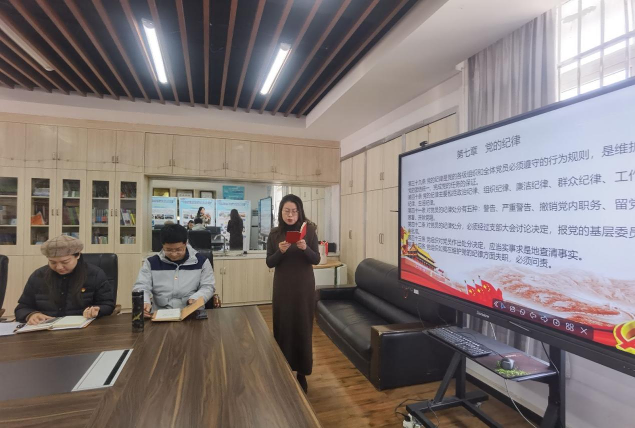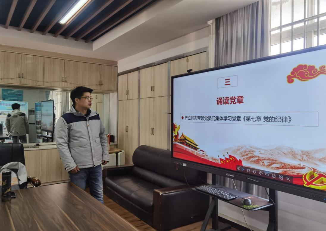 严立同志随后引导全体党员集体诵读党章。党章是党的根本大法,是全体党员的行为准则。在诵读过程中,党员们逐字逐句研读党章内容,从党的性质、宗旨、指导思想,到党员的权利和义务、党的纪律等各个方面,进行了深入学习。通过诵读党章,党员们进一步加深了对党的理论和路线方针政策的理解,明确了作为党员应遵守的规范和要求,为在日常工作和生活中规范言行提供了有力指导,筑牢了思想根基。