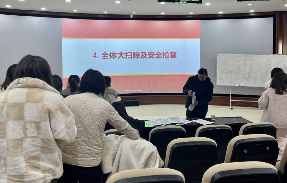 会议最后,组织全体教职工进行大扫除及安全检查。全体教职工积极响应,对办公室、实训室等场所进行全面清扫,同时仔细检查水电安全、设备运行情况,确保环境整洁、安全无隐患。