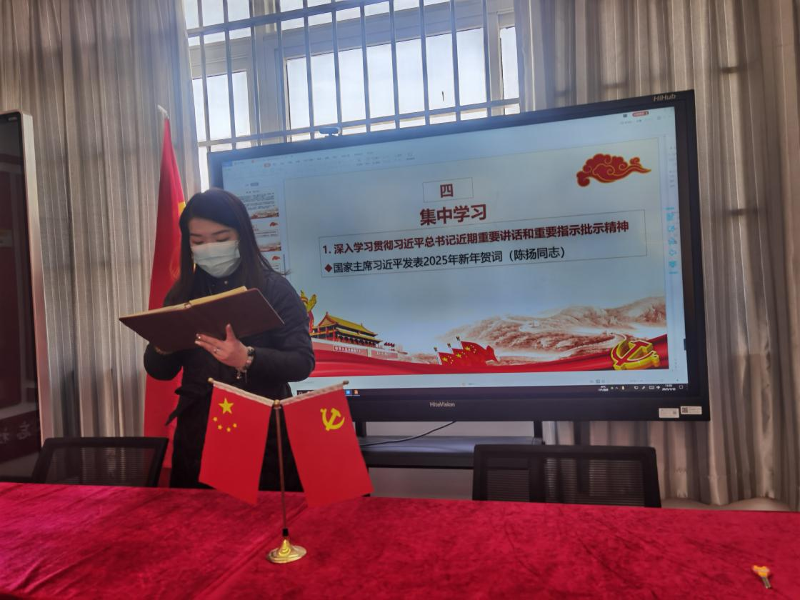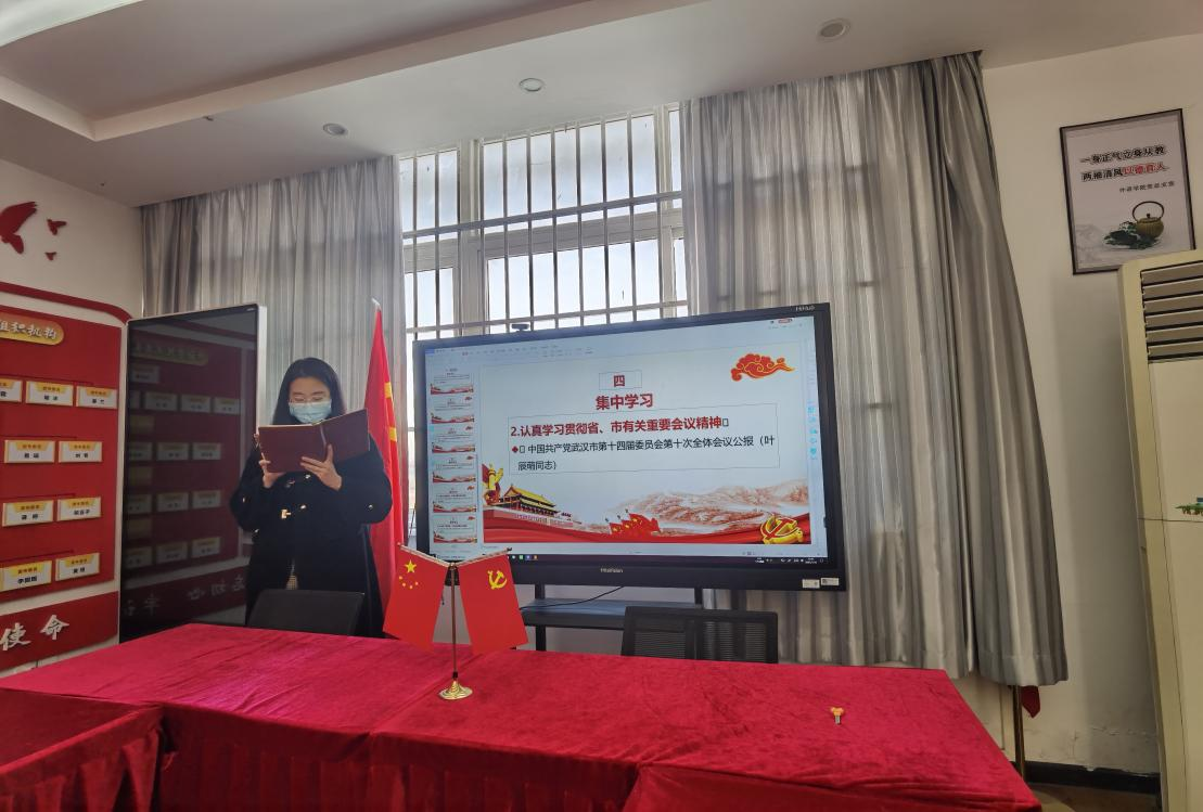 黄颖同志领学习近平总书记在中央经济工作会议上的重要讲话,为我国经济发展指明方向。李俊梅同志传达中共中央政治局民主生活会精神,习近平总书记主持并讲话,强调党内民主生活重要性。党员们明晰党内民主生活规范要求,增强党内民主意识,为加强党的自身建设提供思想支持。陈扬同志分享国家主席习近平2025 年新年贺词,贺词满含国家发展美好愿景与人民深情祝福。黄发洋同志、张黎同志分别领学习近平总书记关于以中国式现代化推进强国建设、民族复兴伟业讲话,及深入推进党的自我革命相关内容。这些讲话为党员提供丰富理论滋养,增强对党的理论、路线方针政策理解认同,为党支部建设发展提供思想指引。李淑梅同志、叶辰萌同志介绍中国共产党湖北省第十二届委员会第九次全体会议公报、中国共产党武汉市第十四届委员会第十次全体会议公报内容。党员们了解省、市重要工作部署与发展规 划,明晰地方发展与国家发展紧密联系,增强为地方经济社会发展贡献力量自觉性。