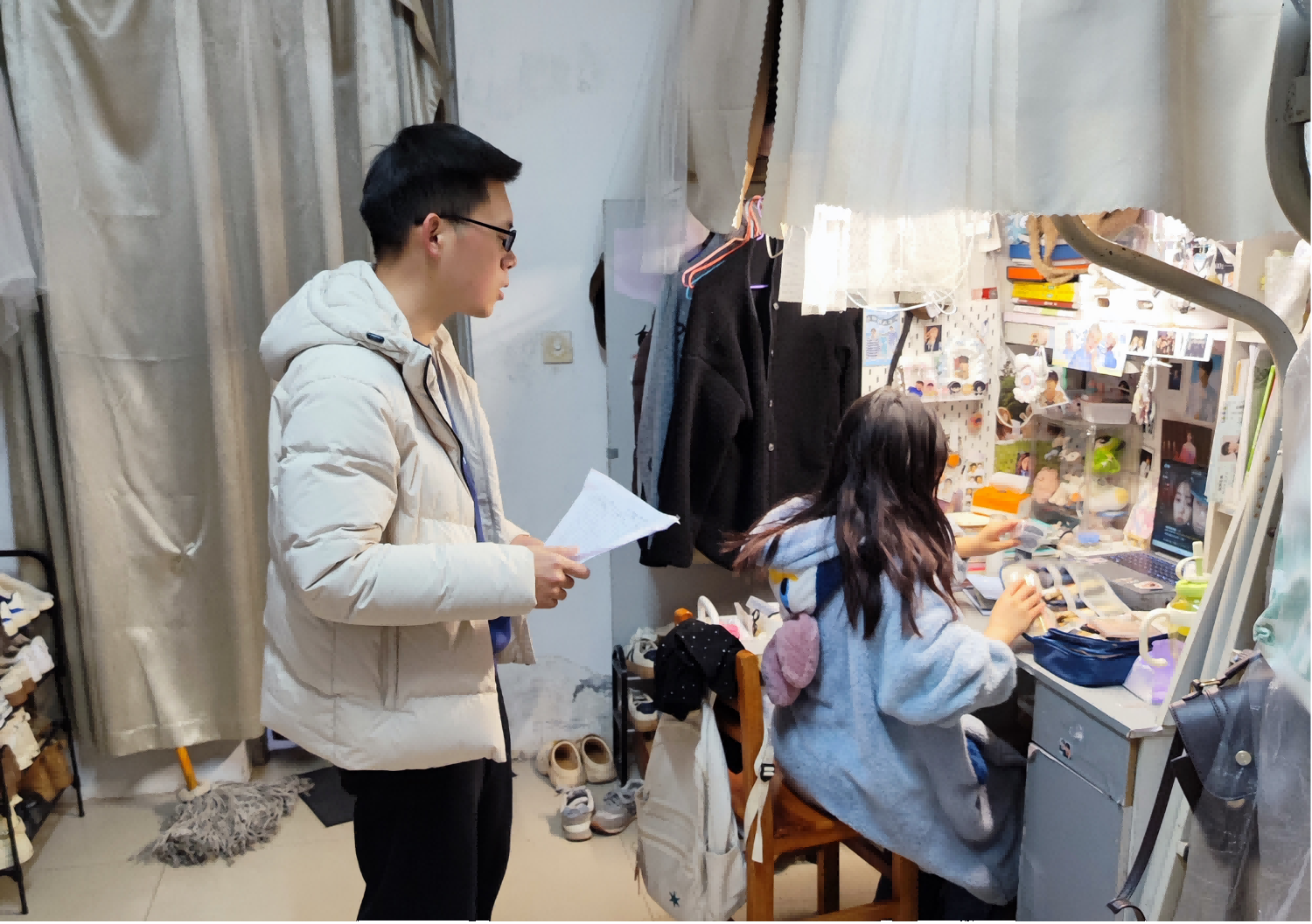 随后,检查组深入学生宿舍,逐一走访了各个房间。每到一处,他们都仔细检查宿舍内的卫生状况,包括床铺整洁、桌面摆放、地面清洁等方面。同时,他们还与学生进行了亲切交谈,询问了他们的假期生活、返校感受以及新学期的打算。学生们纷纷表示,感谢学校领导的关心与关怀,他们将以更加饱满的热情和更加坚定的信心迎接新学期的挑战。