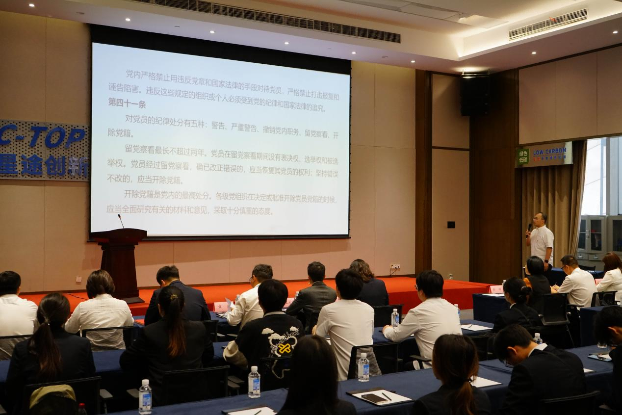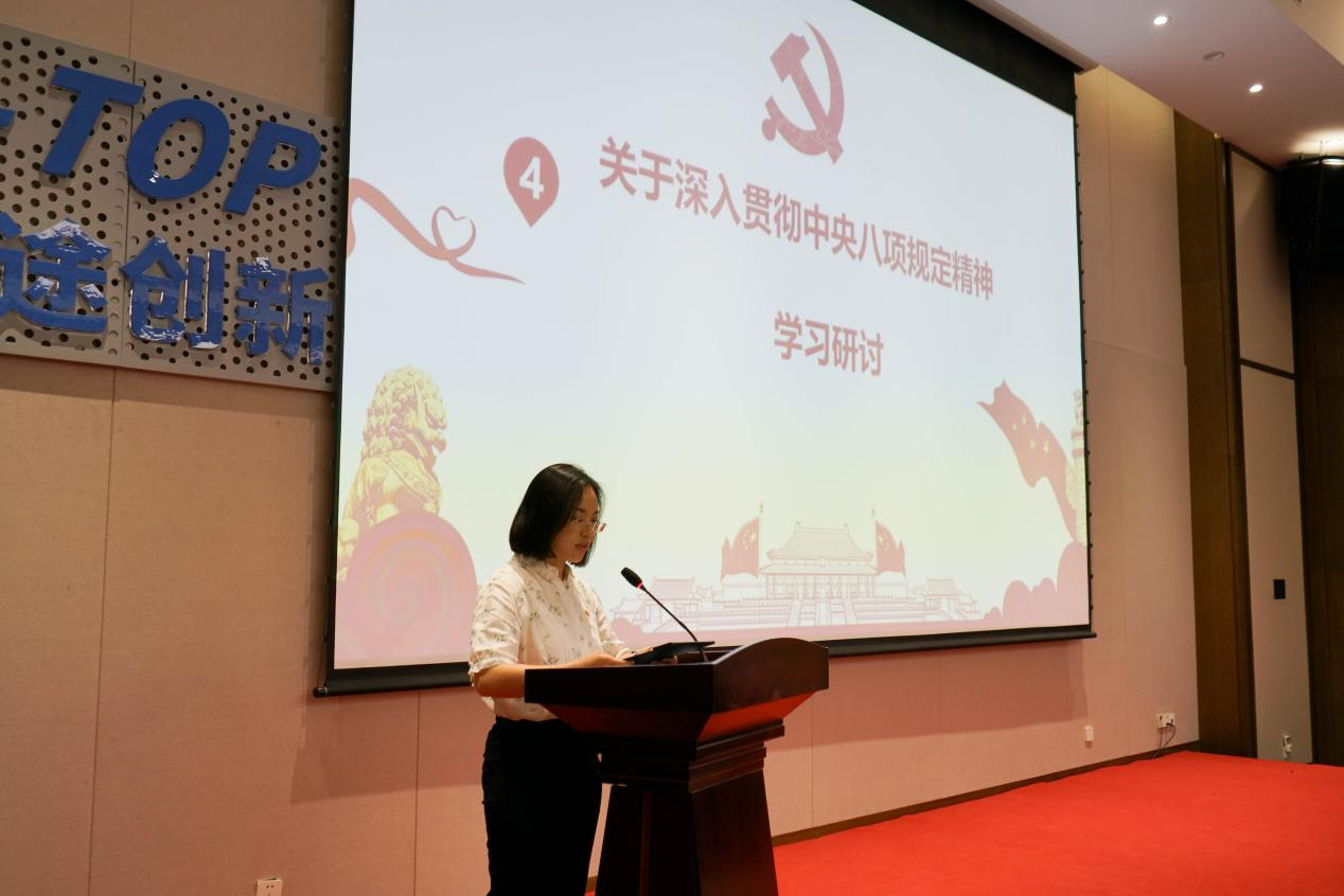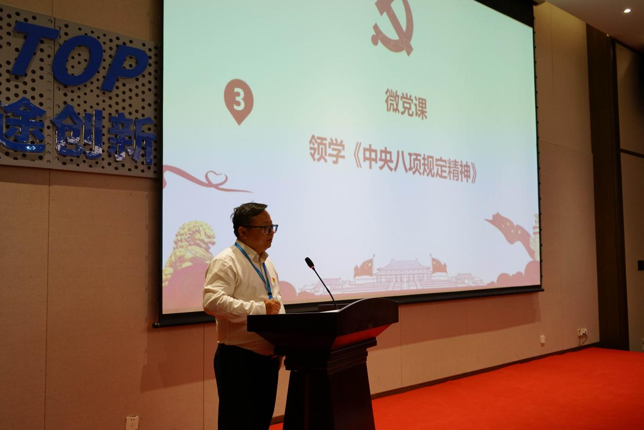 外语学院教师第二党支部胡冲书记主持本次活动。与会全体党团员共同重温入党誓词、外语学院(国际教育学院)王玉磊老师领读、全体党团员集中学习了《中国共产党章程》部分内容,中建科技产业园章静同志讲解微党课--《中央八项规定精神》,谢冰老师和入党积极分子田欢欢同学分别分享了学习心得体会,通过集中学习展开了深入研讨,明确我们要深化认识、提高站位,切实增强开展学习教育的思想自觉、政治自觉、行动自觉;要将中央八项规定精神内化于心、外化于行,将全面从严治党的要求和以人民为中心的发展思想落到实处,切实做到“为民、务实、清廉”。