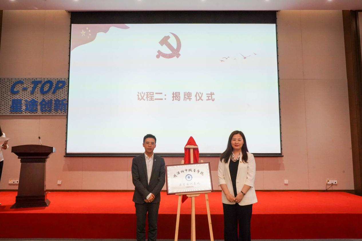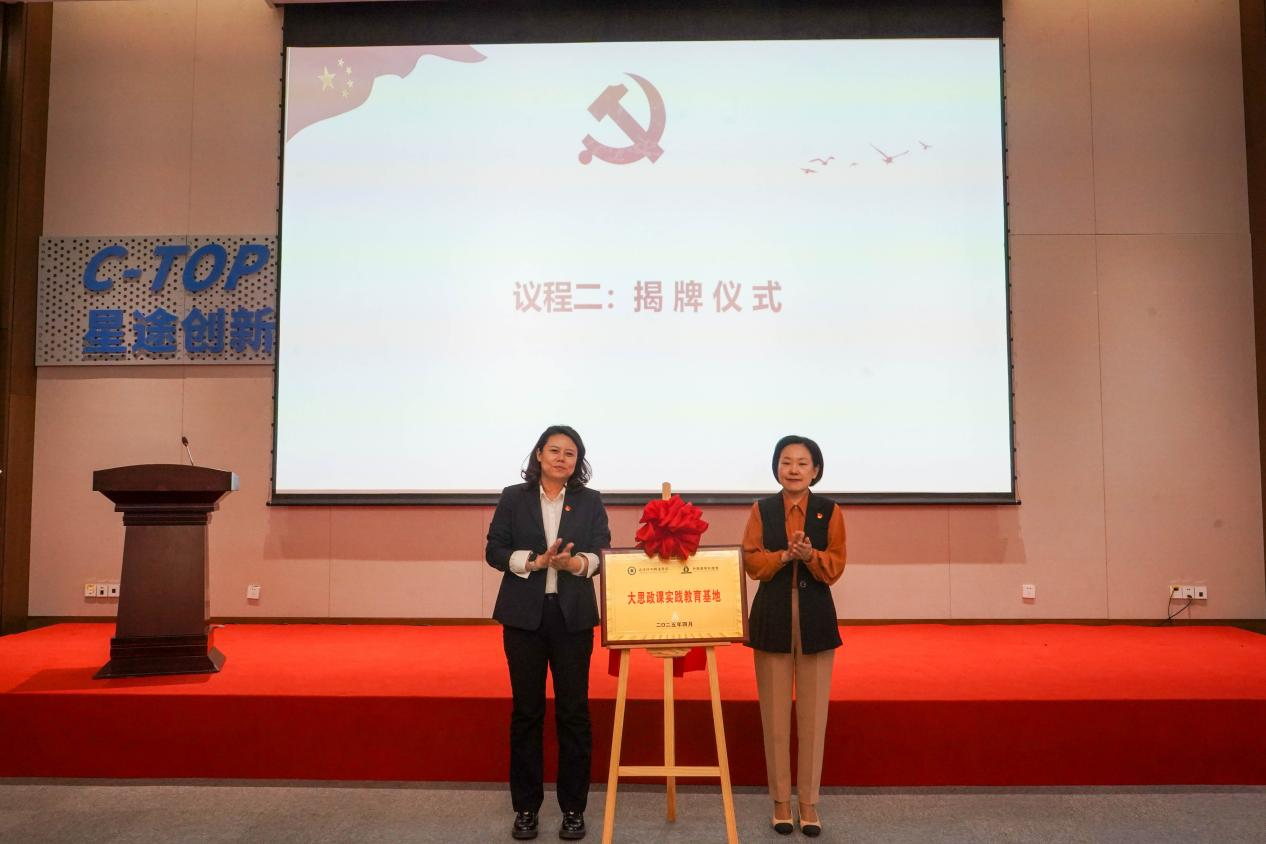接下来在校企合作基地揭牌仪式中,由胡华平副部长和胡娇书记共同为“大思政课教育实践基地”揭牌,推动学校思政教育“小课堂”和社会“大课堂”深度融合;随后由吴丽院长和张祖礼馆长共同为“实习实训基地”揭牌,建立学校与企业之间的人才培养合作机制。