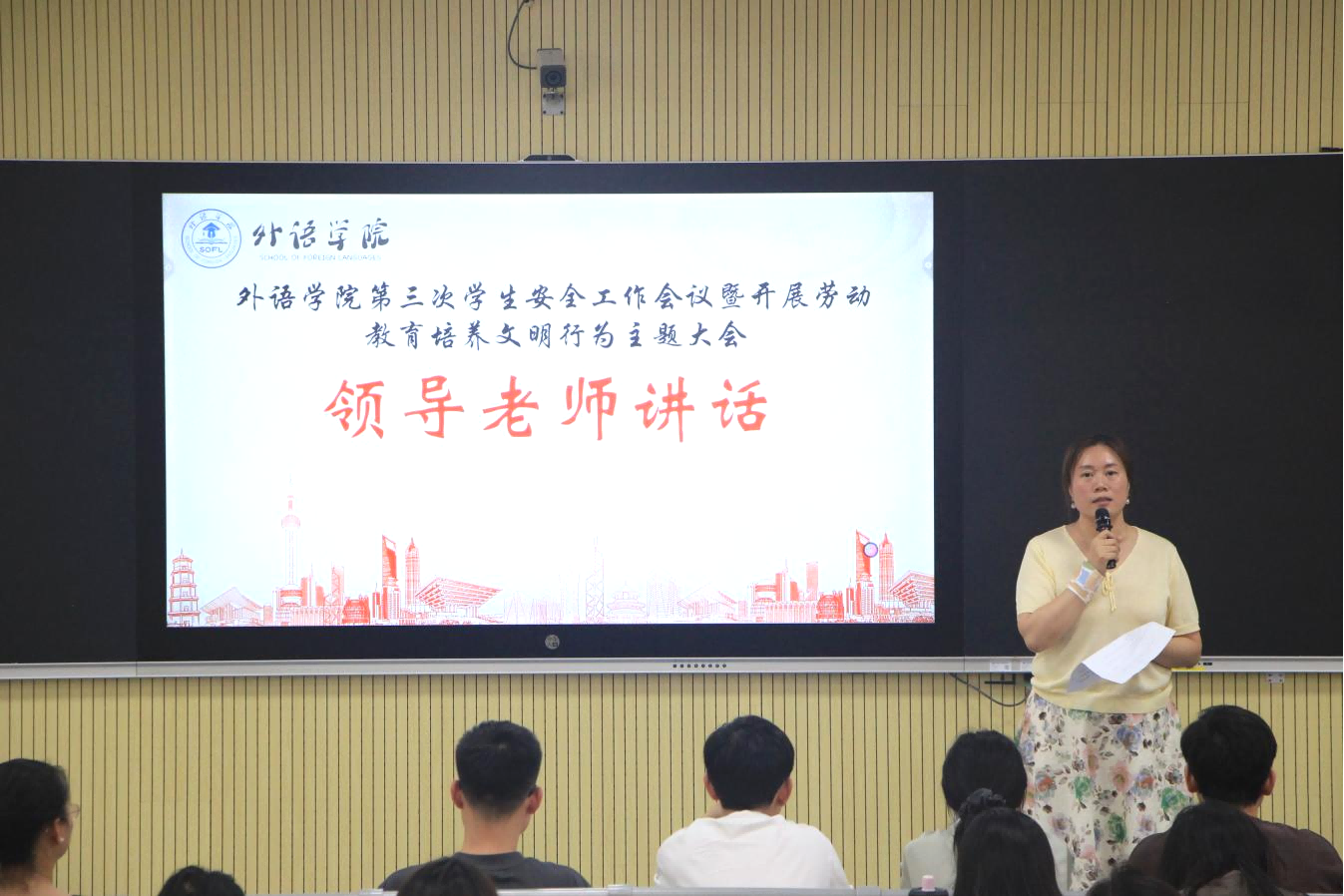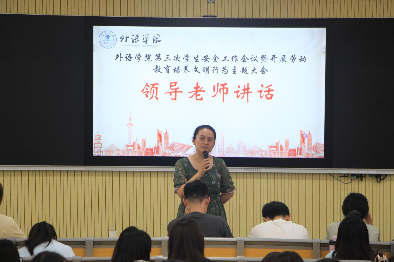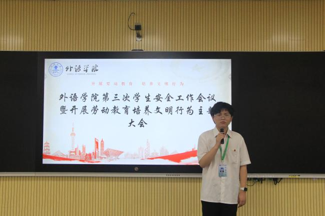 为进一步强化校园安全管理,增强学生劳动教育意识以及推动学生文明行为的养成,5月21日中午,外语学院(国际教育学院)隆重召开第三次学生安全工作会议暨劳动教育培养文明行为主题大会。本次会议聚焦学生文明行为养成教育,旨在让同学们重视劳动教育,以营造良好的学生寝室环境,同时推动学生会及班干部切实做好班级安全管理工作。