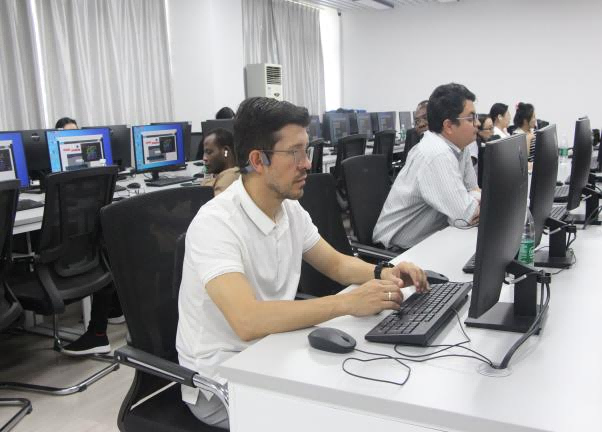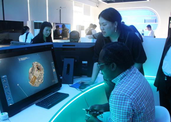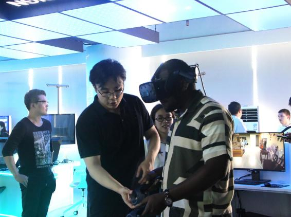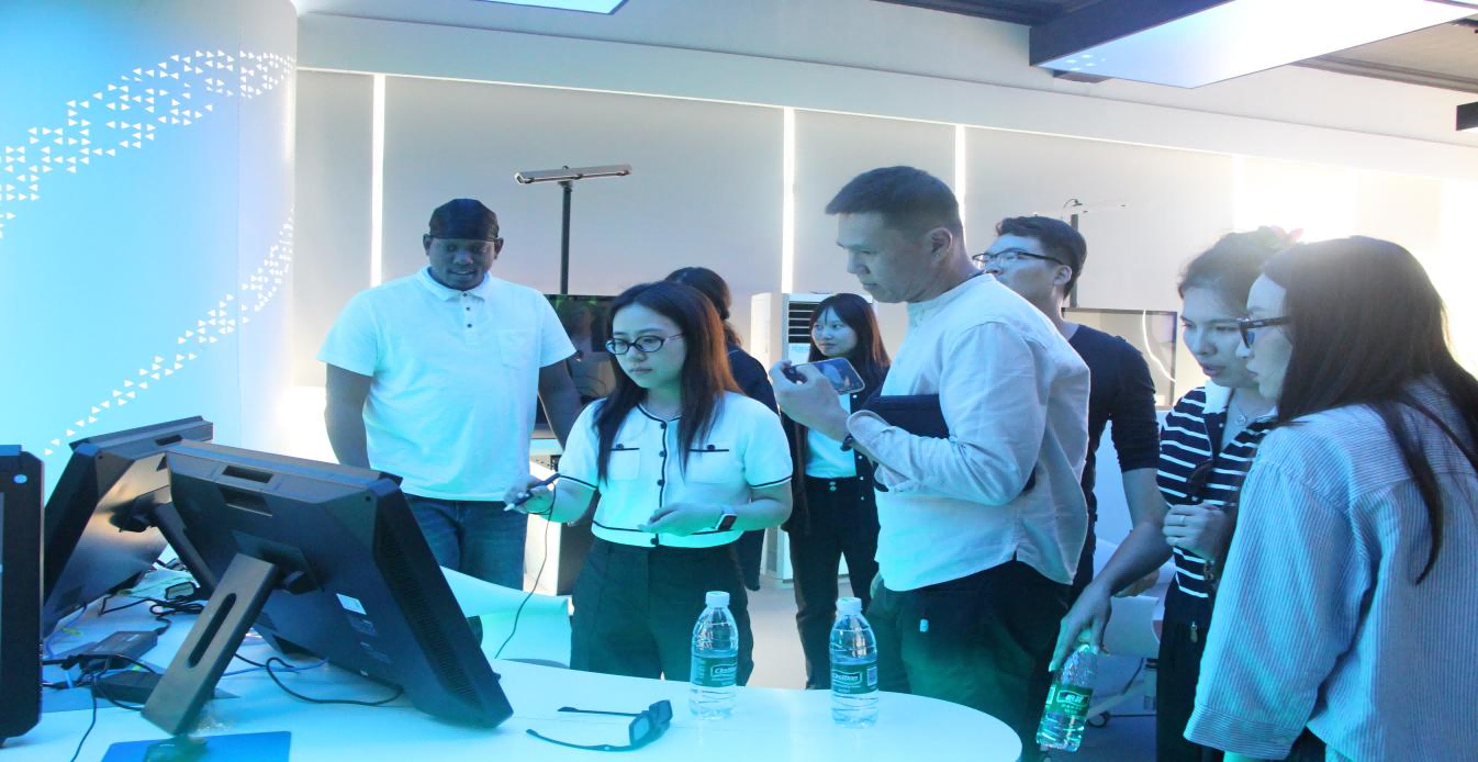 讲座结束后,学员们满怀期待地前往虚拟仿真研创中心,开启了项目体验和实践操作之旅。在肖教授及工作人员的指引下,学员们戴上先进的VR设备,瞬间被带入一个高度逼真的虚拟教育场景之中。在这里,他们仿若置身于未来校园,5G技术的高速率与低时延特性,让虚拟环境中的互动流畅自然。实操环节更是将现场气氛推向高潮,学员们亲自动手,利用中心提供的专业设备,尝试开发属于自己的简单虚拟教学模块。他们热烈讨论设计思路,不断地尝试与探索。不少学员在完成自己的小作品后,兴奋地与身旁的伙伴分享,眼中闪烁着对这项前沿技术的惊叹与对未来将其应用于本国教育的期待之光。