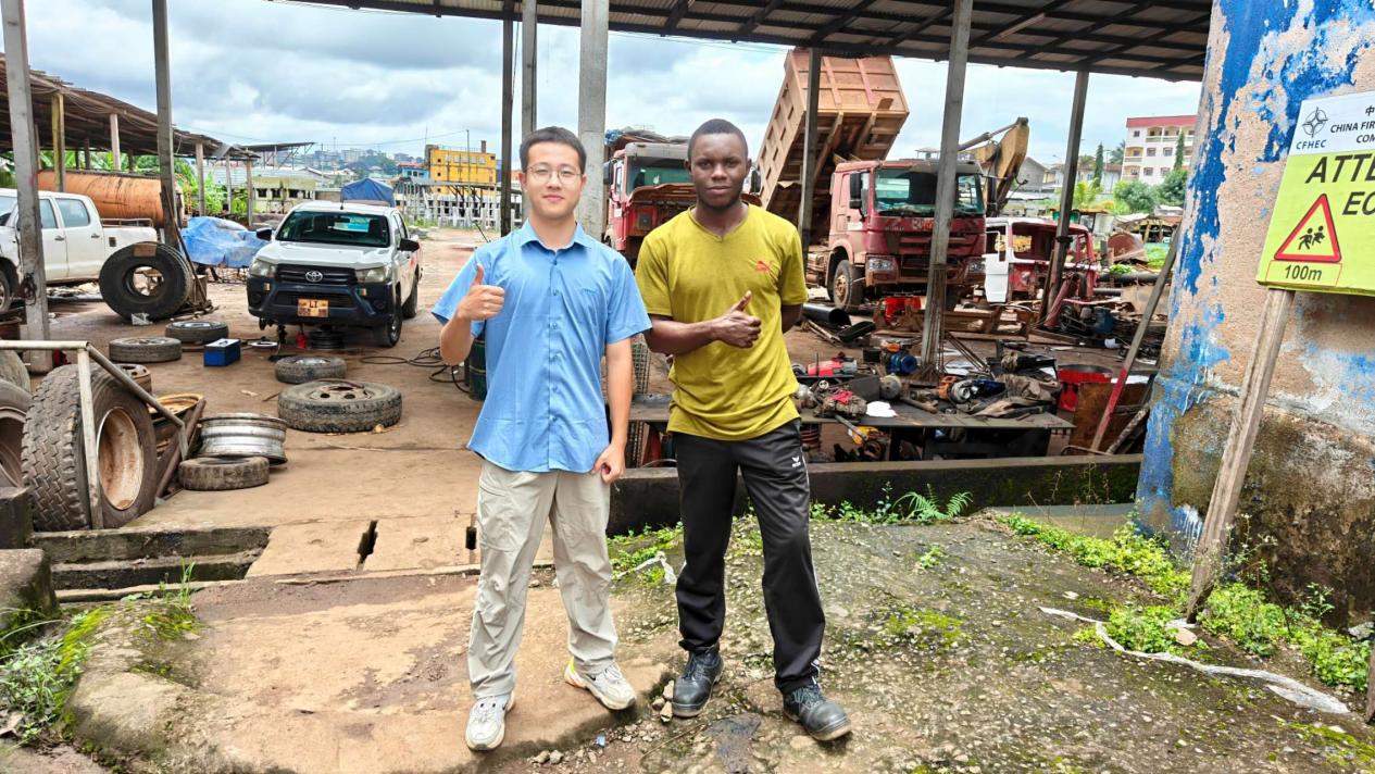 汽车维修专业汽车维修23级乌干达学员爱华(右),现就职于CCCC Uganda,从乌干达送来祝福:“感谢武汉城市职业学院带给我了宝贵经历和技能,祝中国和乌干达友谊长存,祝武城师生们节日快乐!”