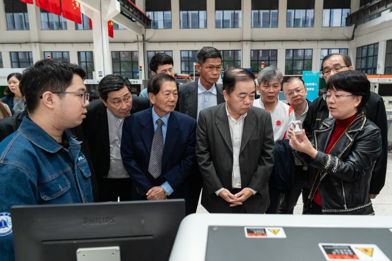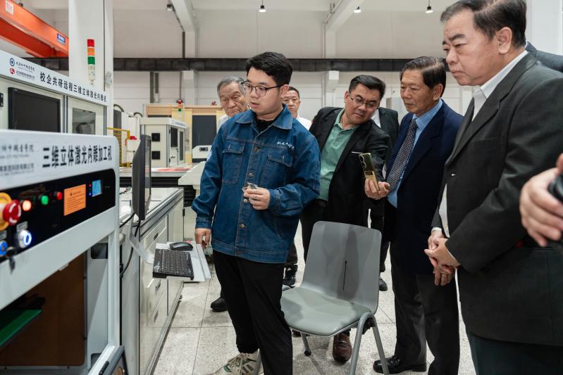 座谈会后,参访团在旅游与酒店管理学院体验国家级非遗——宋代七汤点茶技艺,现场品茗论道,感受中华茶文化的深厚底蕴。机电工程学院也为各位来宾精心安排“技耀荆楚”系列展示:GF高端多轴数控加工中心、益模科技“云枢智链”智能制造产线、激光内雕“黄鹤楼”和激光切割“中国福”等互动项目,让来宾近距离领略现代装备制造的前沿技术。
