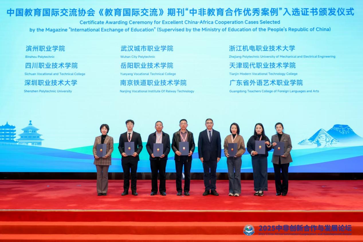 11月20日下午,论坛举行了中国教育国际交流协会《教育国际交流》期刊“中非教育合作优秀案例”颁发仪式。武汉城市职业学院凭借在“中文+职业技能”培训与国际合作领域的扎实工作和显著成效,作为湖北省唯一入选的高职院校,成功获评优秀案例,充分体现了学校在中非职业教育合作方面的持续深耕与服务国家战略的实践能力。
