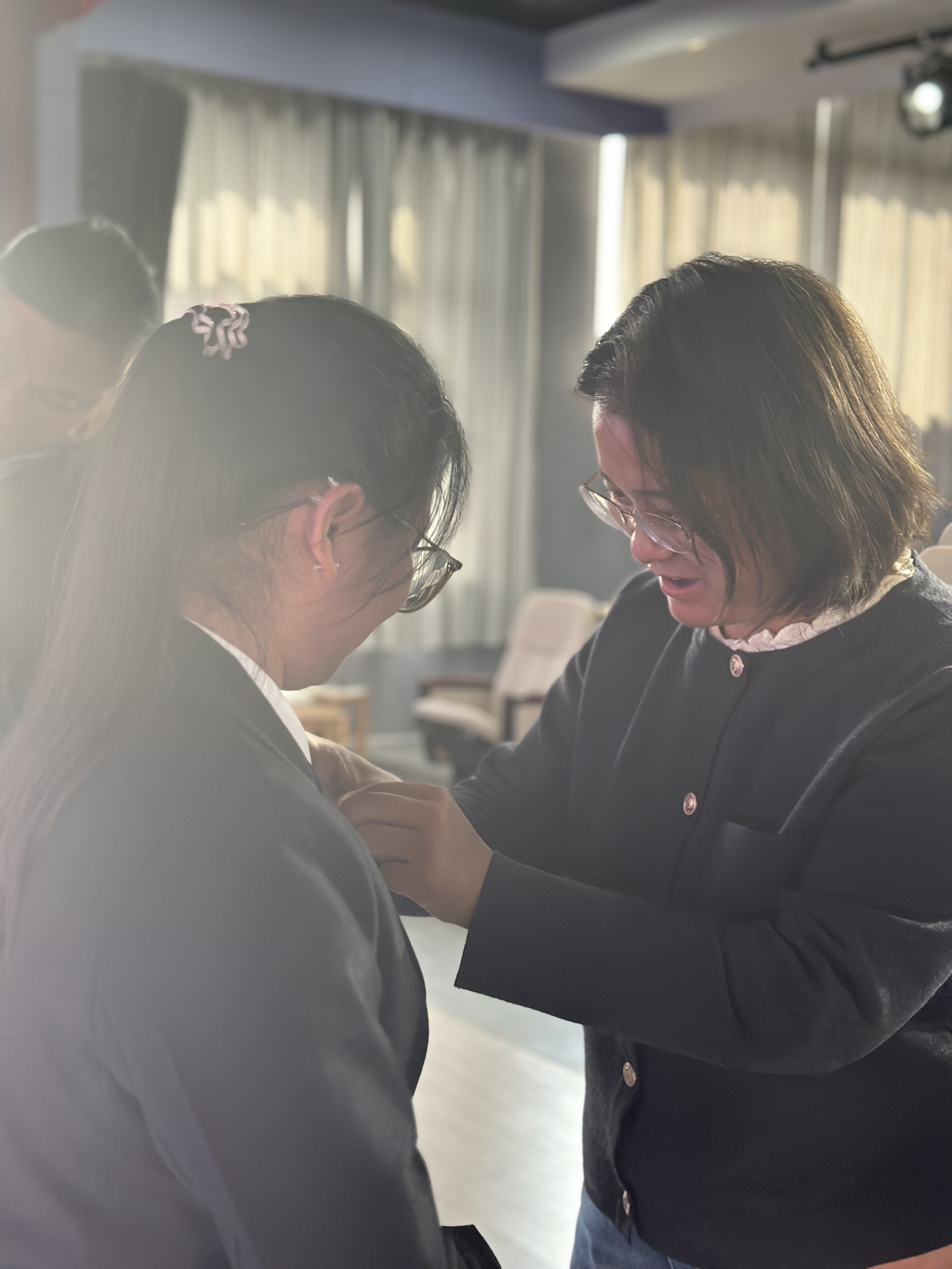 最后,会议举行了为新发展党员佩戴党徽的庄严仪式,党总支书记刘求明、党总支副书记董云燕、学生党支部书记李娟分别为陶麒瑞、王芙蓉、王思雨三位新预备党员佩戴了党徽。在熠熠生辉的党徽映照下,三位同志感受到了光荣与使命,更体会到了责任与担当。
