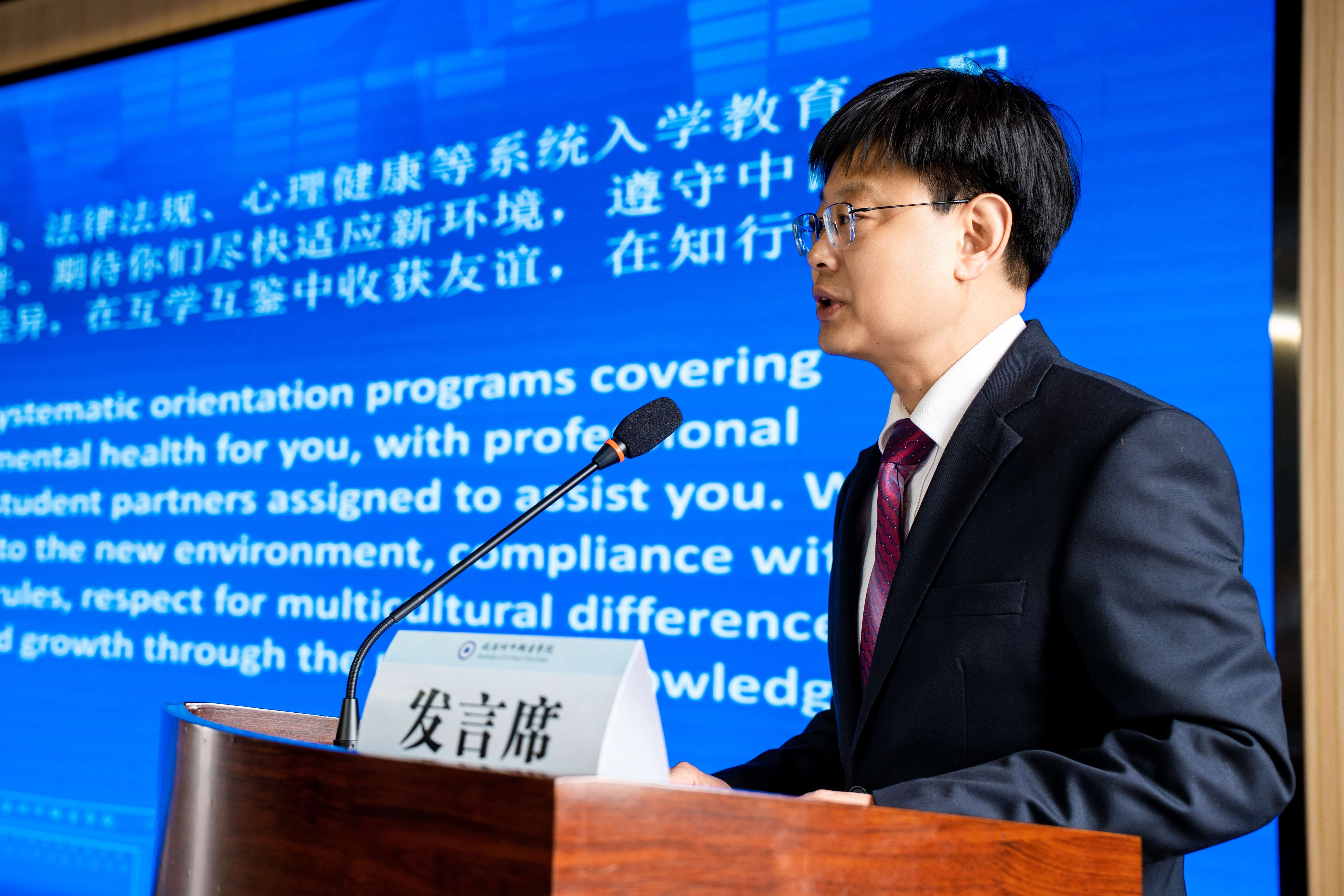 湖北省教育厅对外合作与交流处余磊主任在致辞中,高度肯定了学校在国际学生培养及“职教出海”方面取得的扎实成效。他热情寄语留学生:一要勤奋学习,掌握汉语这把“金钥匙”;二要广交朋友,在交流互鉴中收获真挚友谊;三要多走多看,亲身体验中国的发展和荆楚风貌,将真实的中国故事传递给更多人。