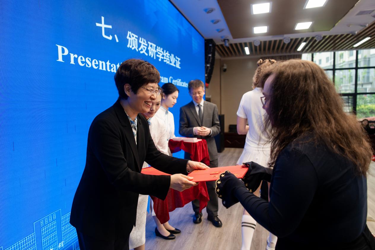 现场播放研学活动视频集锦,全面回顾两周以来美国青年在汉学习、实践、文化体验的精彩瞬间。美国学生代表奥斯汀·科尔·沃德发言,分享在汉语学习、职业技能训练、中国文化体验中的收获与感动,表达对武汉、对武城的不舍之情。